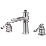BWE Brushed Nickel Waterfall 8-16 Inch 3 Holes Two Handle Commercial Widespread Bathroom Sink Faucet Deck Mount