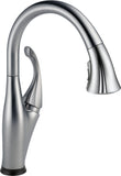 Details: Touch it on. Touch it off. Whether you have two full hands or 10 messy fingers, Delta Touch2O Technology helps keep your kitchen faucet clean, even when your hands aren’t. A simple touch anywhere on the spout or handle with your wrist or forearm activates the flow of water at the temperature where your handle is set. The Delta TempSense LED light changes color to alert you to the water’s temperature and eliminates any possible surprises or discomfort. Delta MagnaTite Docking uses a powerful integrated magnet to set your pull down sprayer precisely into place and hold it there so it stays docked when not in use. Delta ShieldSpray Technology cleans with laser-like precision while containing mess and splatter. A concentrated jet powers away stubborn messes while an innovative shield of water contains splatter and clears off the mess, so you can spend less time soaking, scrubbing and shirt swapping. Delta kitchen faucets with DIAMOND Seal Technology perform like new for life with a patented design which reduces leak points, is less hassle to install and lasts twice as long as the industry standard*. Kitchen sink faucets with Touch-Clean Spray Holes allow you to easily wipe away calcium and lime build-up with the touch of a finger. You can install with confidence, knowing that Delta kitchen faucets are backed by our Lifetime Limited Warranty. Electronic parts are backed by our 5-year electronic parts warranty. *Industry standard is based on ASME A112.18.1 of 500,000 cycles.