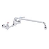 DuraSteel Commercial Duty Wall Mount Faucet - 8" Center with 14" Swing Nozzle Spout - Dual Lever Handles - Chrome Polished and Brass Constructed Body - NSF Approved