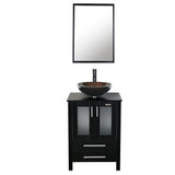 eclife 24 inch Bathroom Vanity Combo Modern MDF Cabinet with Vanity Mirror Tempered Glass Counter Top Vessel Sink with 1.5 GPM Faucet and Pop Up Drain A1B2