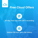 - 【Cloud Service】: With Cloud Service, you can review, customize, save, share the footage, or have a flashback of all-day details in just few seconds. Motion alert clips are saved in the cloud for 12 hours for free. All users are also eligible for a 30-day free trial of our 7-day cloud recording plan. Paid cloud recording plans for storing 24/7 footage are available in 7-day and 30-day plans.
