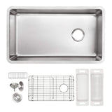 ZUHNE Verona 32 x 19 Inch Single Bowl Under Mount Reversible Offset Drain 16 Gauge Stainless Steel Kitchen Sink W. Grate Protector, Caddy, Colander Set, Drain Strainer and Mounting Clips, 36" Cabinet